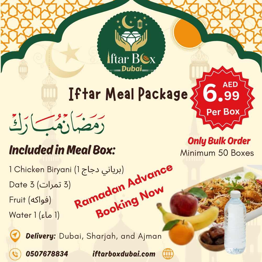 Sponsor fresh Iftar meals for those in need across Dubai, Sharjah, and Ajman. Simply choose your required quantity and add extra items like Samosas, Juice, or Laban for only 1 AED each to personalize your boxes. Place your bulk order directly via WhatsApp and earn Sawab with ease.